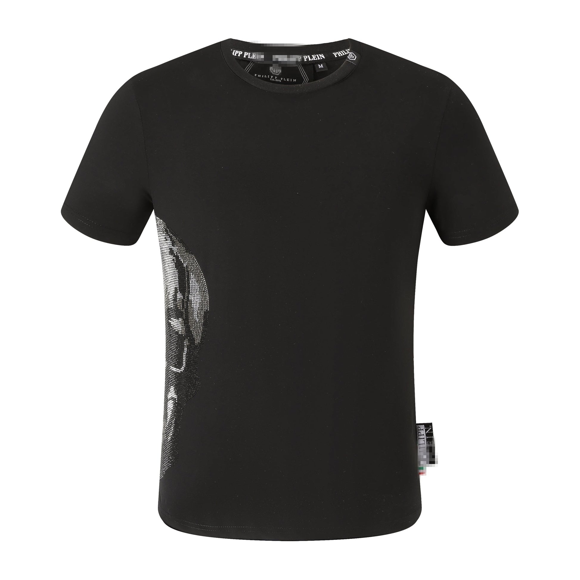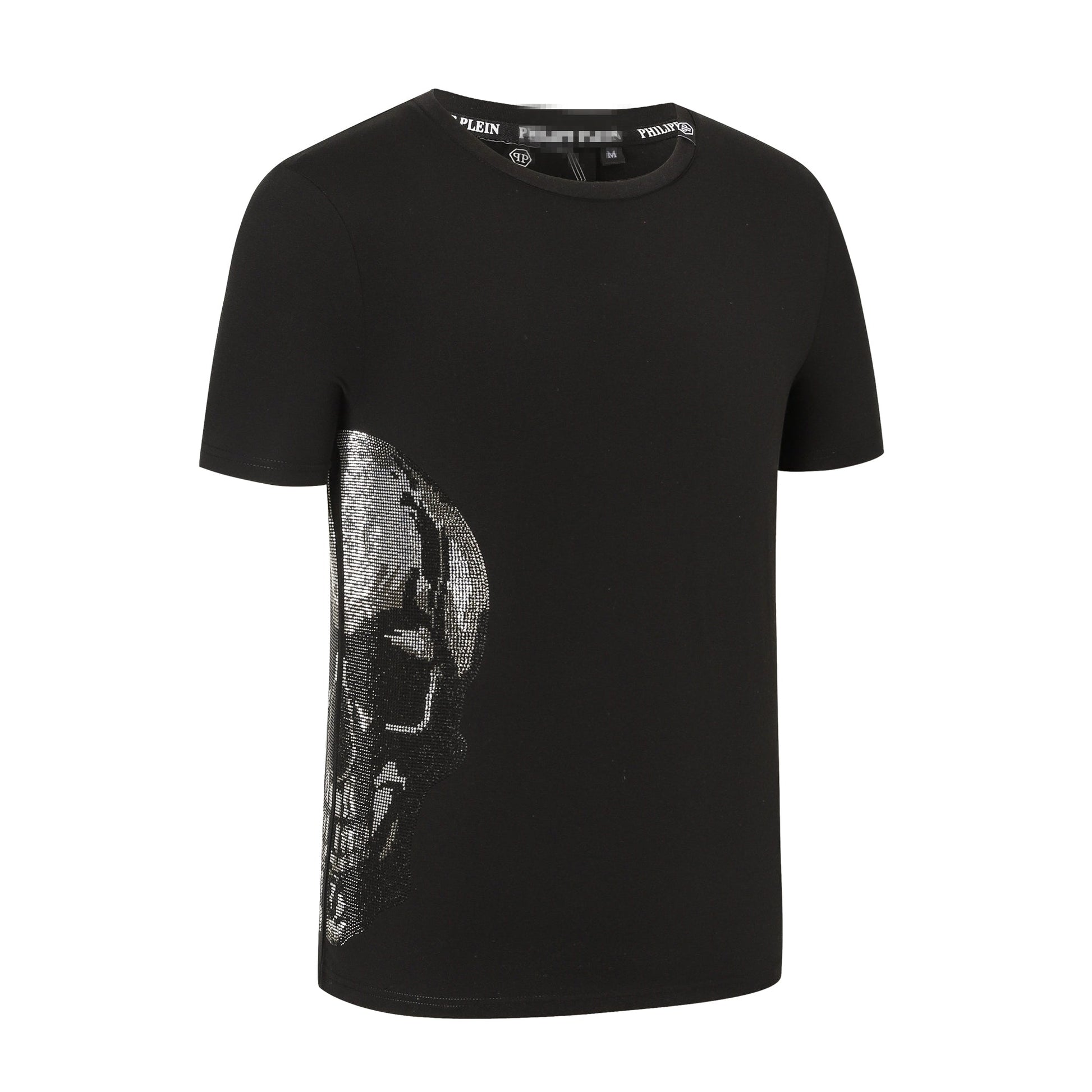 Classically cut cotton T-shirt with ribbed neckline and short sleeves. Diamond print on front, leather branding on back