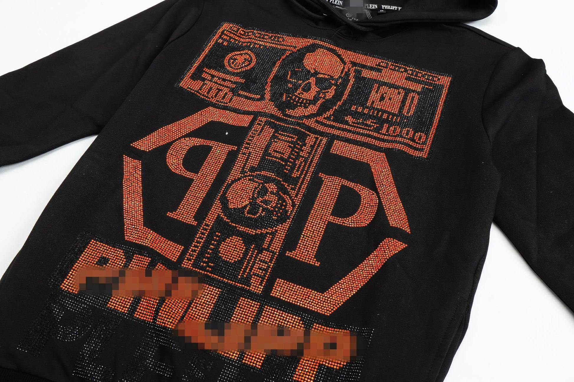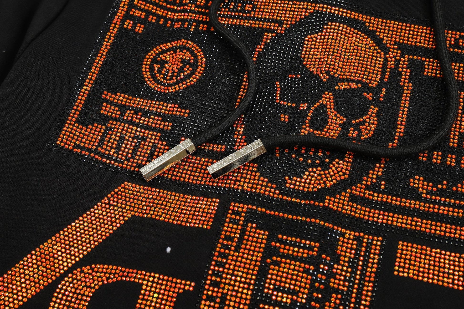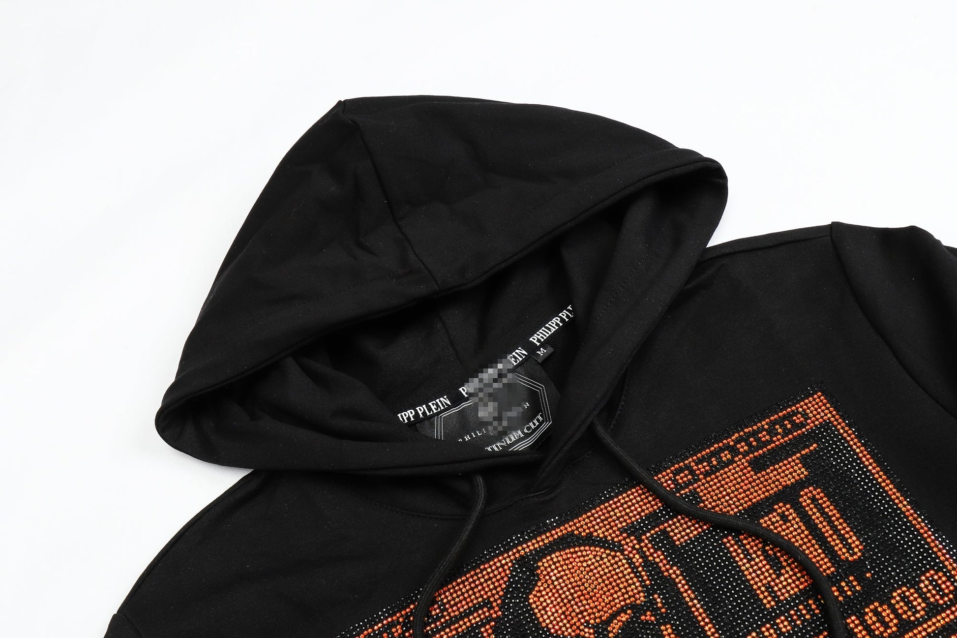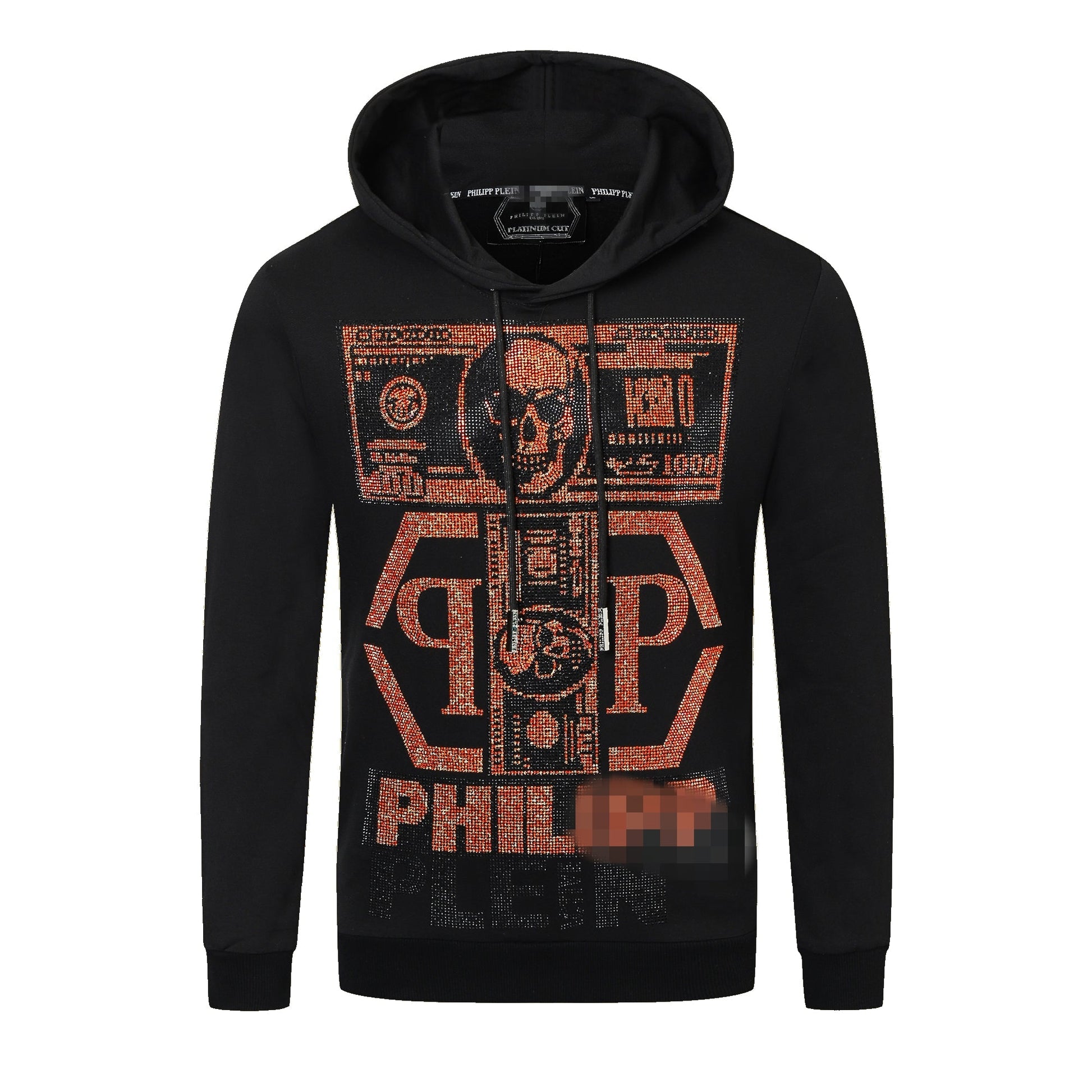 Classic cut cotton, hooded, long sleeved, heavyweight sweatshirt. PP leather standard printed on the front, diamonds printed on the back
