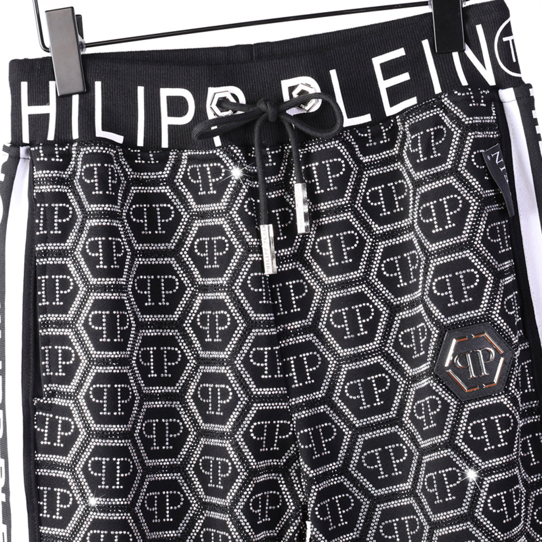 Classic cut leather and cotton zip-up jacket. PP leather slogan printed on front and diamond pattern printed on back