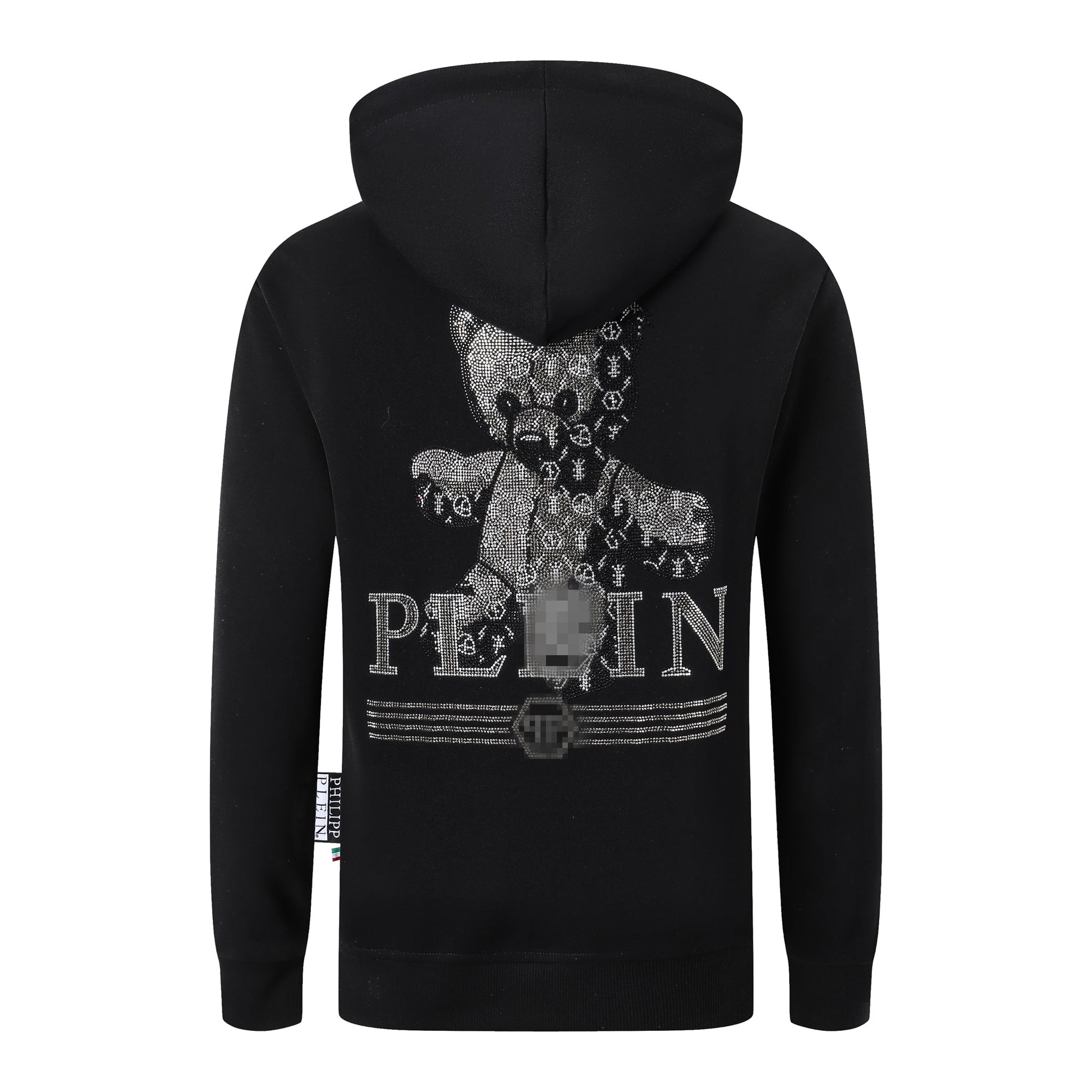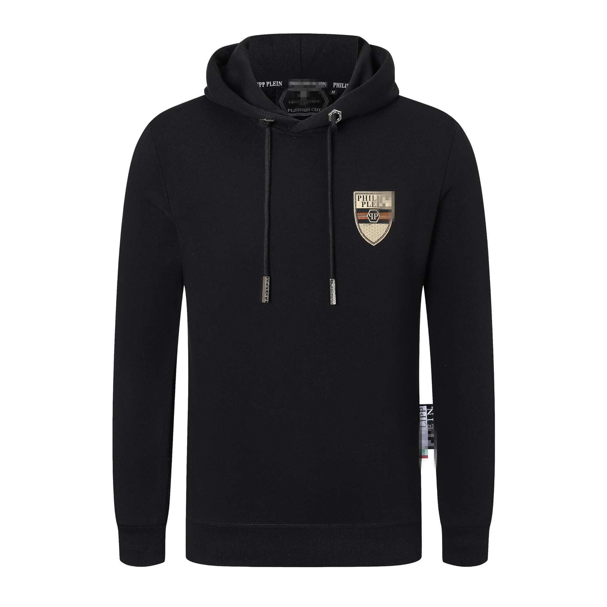 Classic cut cotton, hooded, long sleeved, heavyweight sweatshirt. PP leather standard printed on the front, diamonds printed on the back
