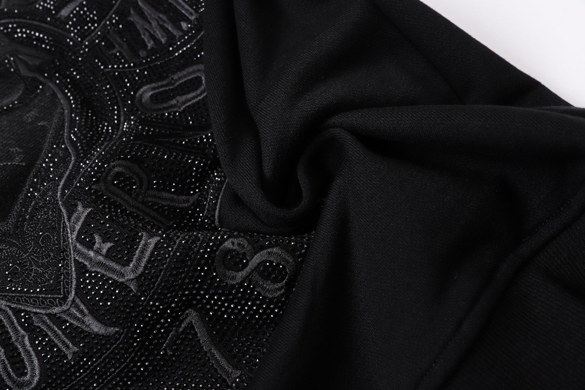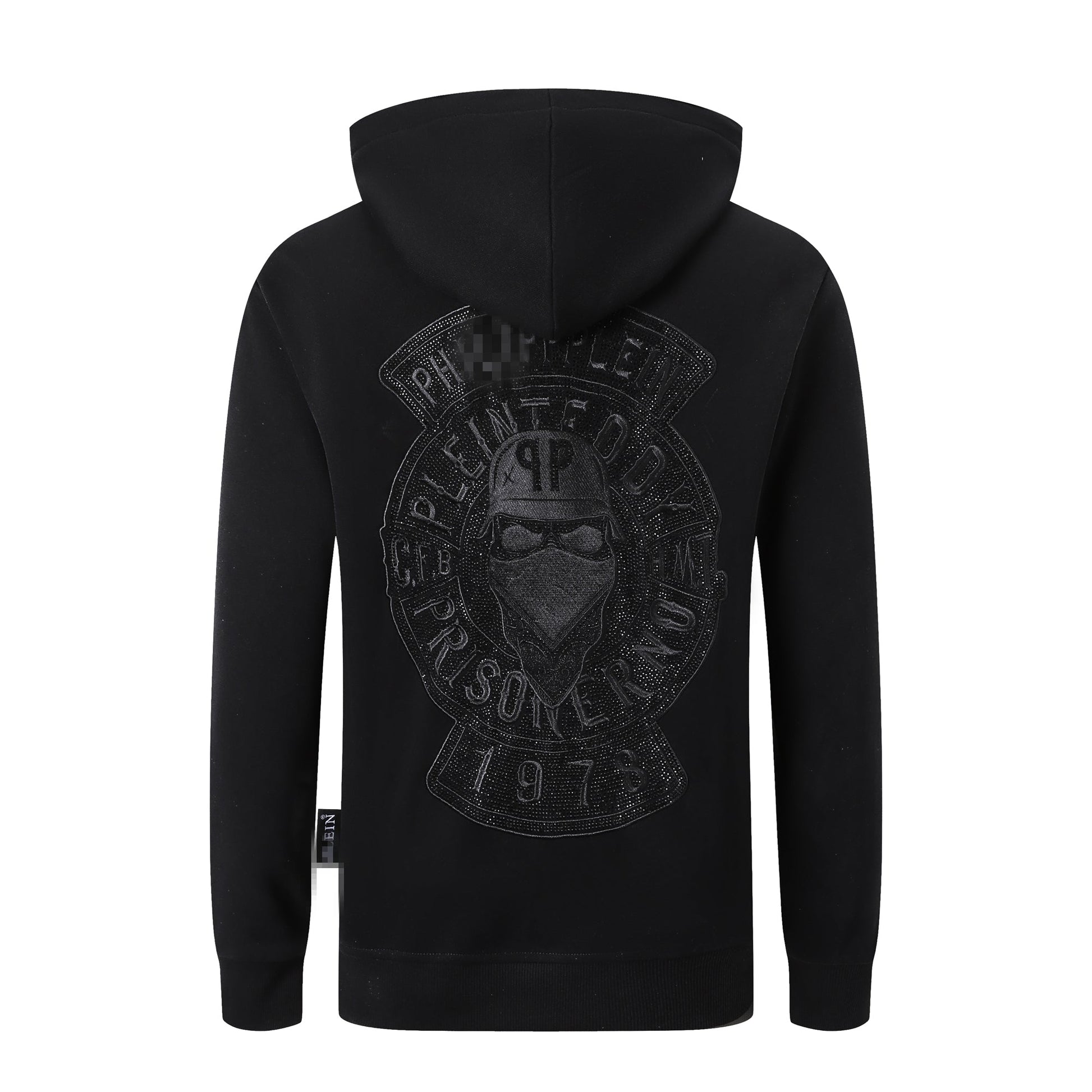 Classic cut cotton, hooded, long sleeved, heavyweight sweatshirt. PP leather standard printed on the front, diamonds printed on the back