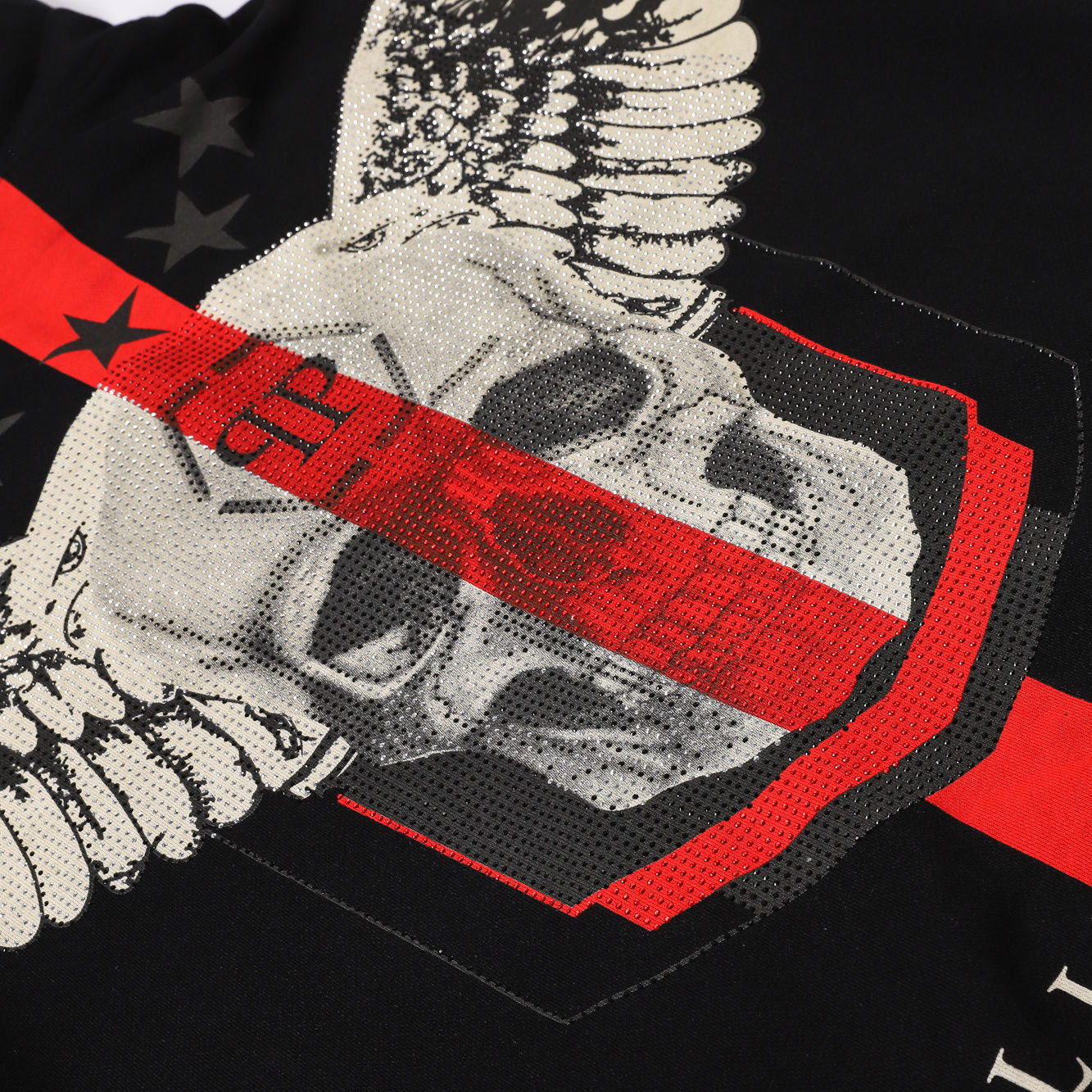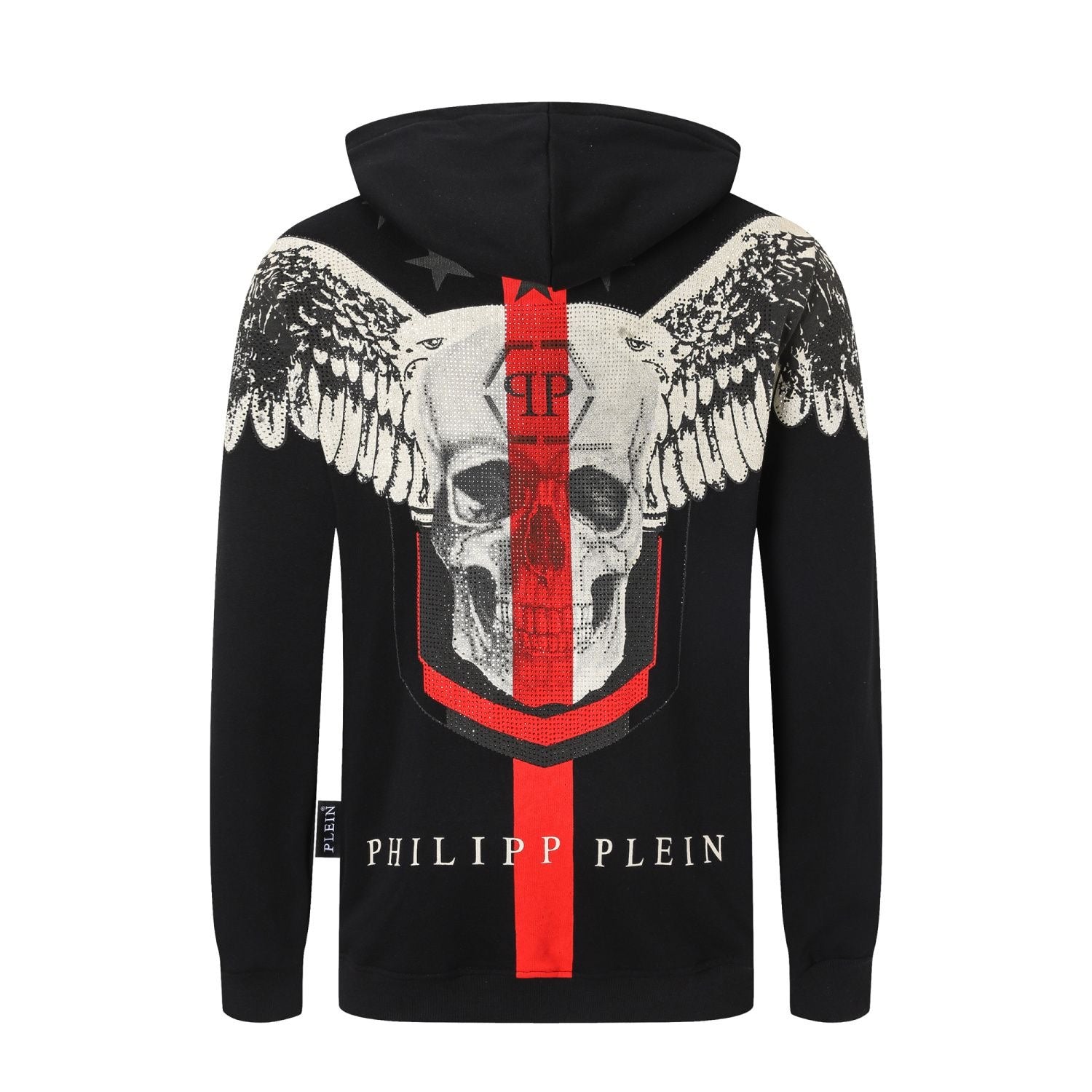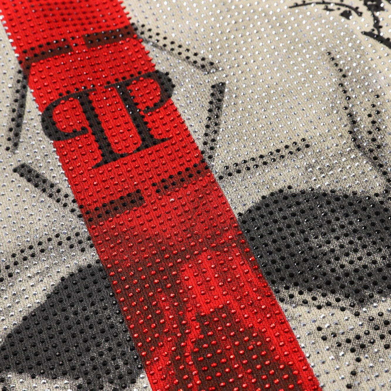 Classic cut leather and cotton zip-up jacket. PP leather slogan printed on front and diamond pattern printed on back